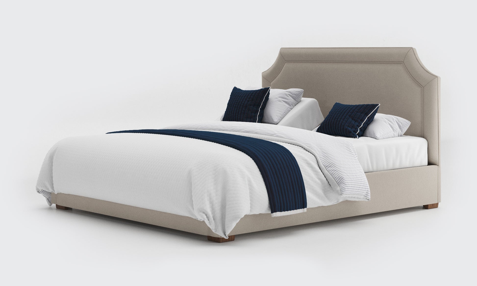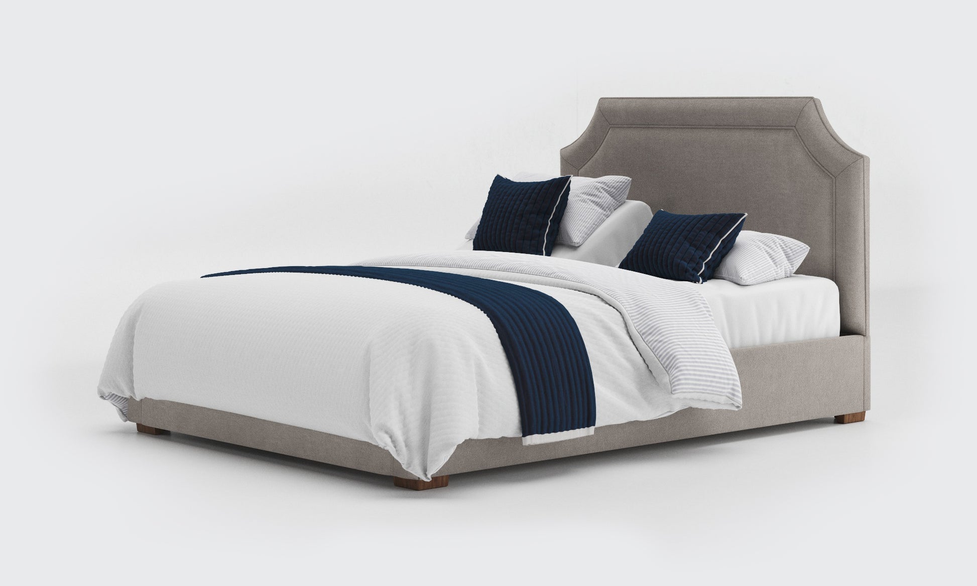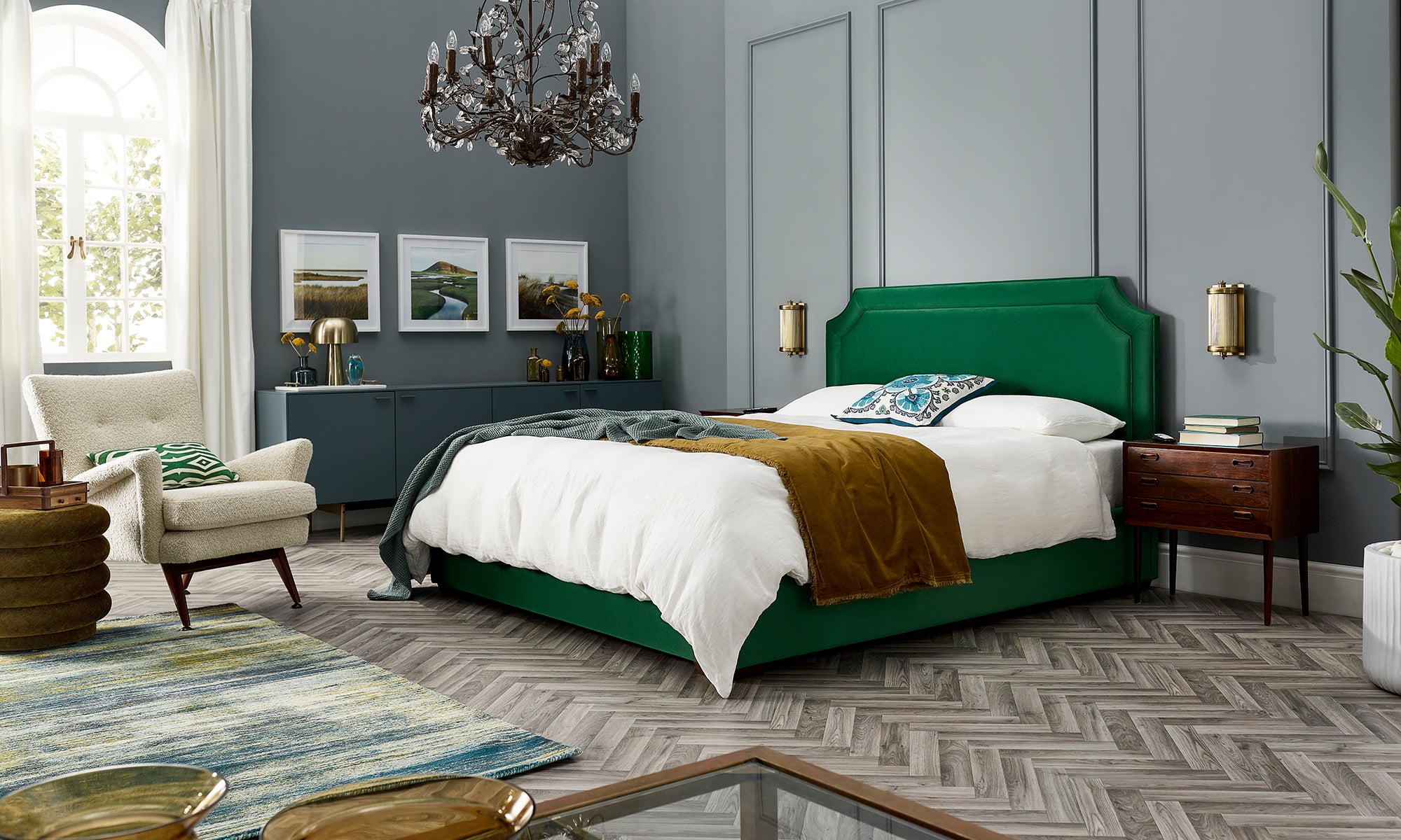 The Saxby features a luxuriously shaped head and footboard with low wooden feet.