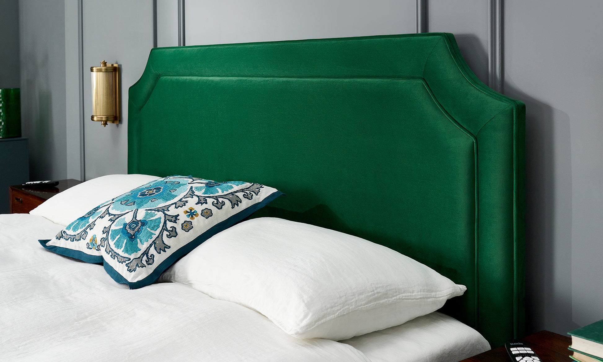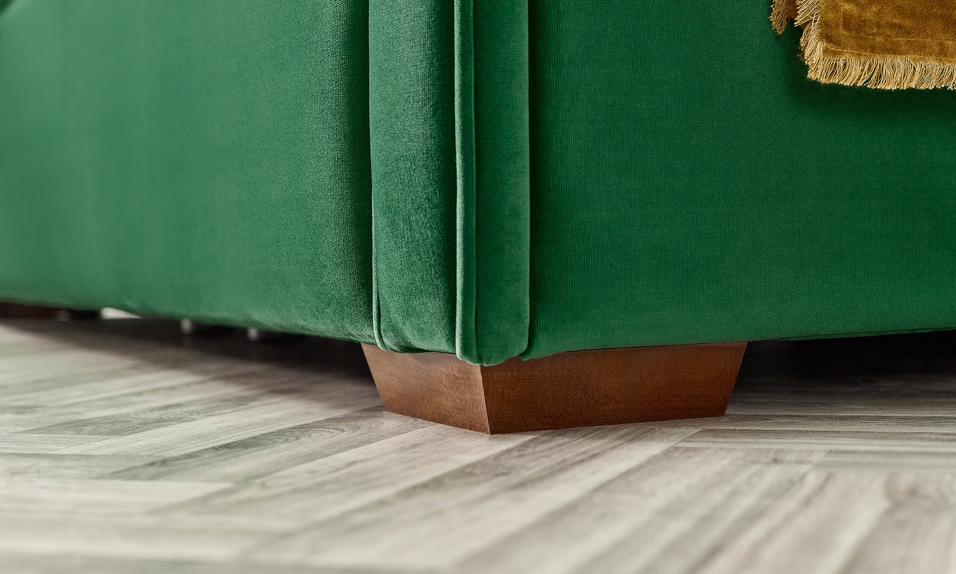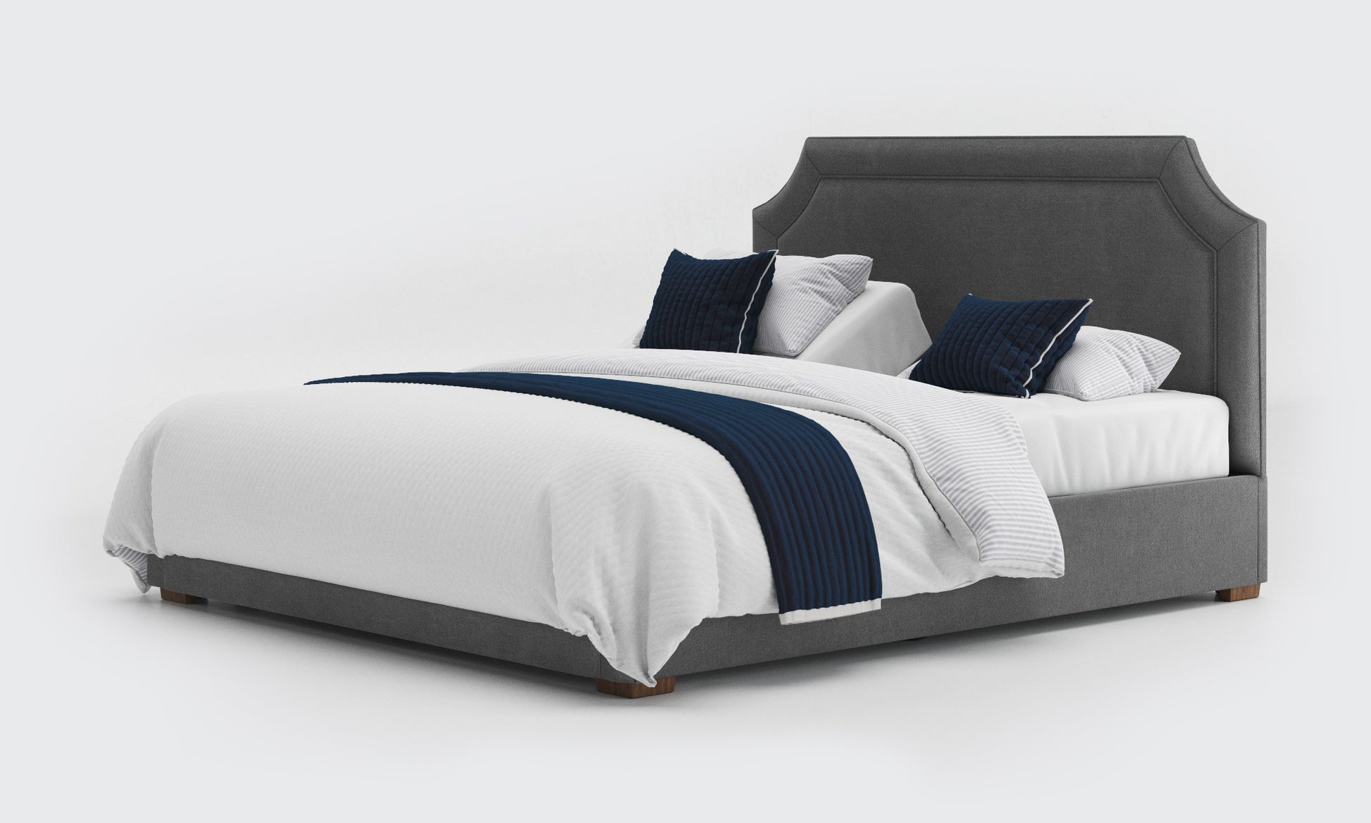 The Saxby features a luxuriously shaped head and footboard with low wooden feet.